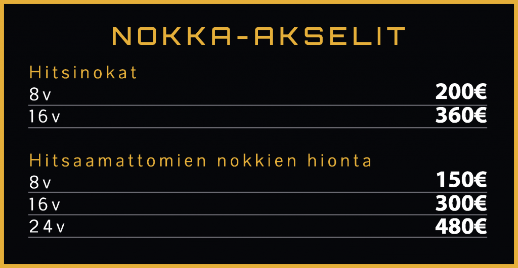 ( Huom! Kaikki nokka-akselit hiotaan asiakkaan aihioon! )
